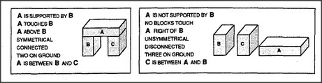 For example, suppose that we already know A is supported by B. There is then no need to remember that A touches B or that A is above B — because these are things that we can figure out. For a different kind of example, suppose we knew that A was not supported by B. It then seems unnecessary to remember that A was to the right of B. Common sense can tell us that if A is not on B, it must lie somewhere else. However, at least in the present context, it does not matter whether that somewhere else is to the right; another time it might just as likely lie to the left. If we stored such details too recklessly, our minds would get cluttered up with useless facts.