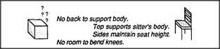 Uniframes that include structures like this can be powerful. For example, such knowledge about relations between structure, comfort, and posture could be used to understand when a box could serve as a chair: that is, only when it is of suitable height for a person who does not require a backrest or room to bend the knees. To be sure, such clever reasoning requires special mental skills with which to redescribe or reformulate the descriptions of both box and chair so that they match despite their differences. Until we learn to make old descriptions fit new circumstances, our old knowledge can be applied only to the circumstances in which it was learned. And that would scarcely ever work, since circumstances never repeat themselves perfectly.