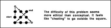Most people find the nine-dot problem hard to solve because they assume that the dots form a square that bounds the working space. Indeed, the problem is insoluble unless the drawing can extend outside that area. Thus the problem is easier if one does not perceive those dots as forming a square. We often self-impose assumptions that make our problems more difficult, and we can escape from this only by reformulating those problems in ways that give us more room.