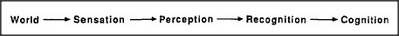 But this does not explain how what we see is influenced by what we expect to see. Human vision must somehow combine the information that comes from the outer world with the structures in our memories. The situation must be more like this: