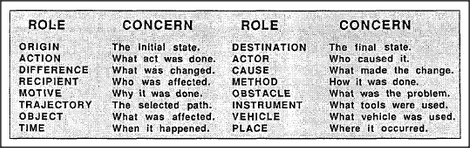 These concerns and roles seem so important that every language has developed special word-forms or grammatical constructions for them. How do we know who drove the car? We know that it's Jack — because the Actor comes before the verb. How do we know a car was involved? Because that is the default Vehicle for drive. When did all this happen? In the past — because the verb drive has the form dr-o-ve. Where did the journey start and end? We know that those places are Boston and New York, respectively, because in English the prepositions from and to precede the Origin and Destination. But we often use the same prepositions for different kinds of concerns. In the sentence about driving, from and to refer to places in space. But in the sentence below they refer to intervals of time: