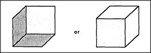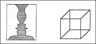 The drawing on the left might represent either a single candlestick or two people facing each other. The drawing on the right looks like a cube — but first it looks like a cube as seen from above and then, suddenly, it looks like a cube as seen from below. Why does each drawing seem to change its character from time to time? Why can't we see both forms at once? Because, it seems, our agencies can tolerate just one interpretation at a time.