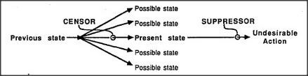 Clearly, censors can be more efficient than suppressors, but we have to pay a price for this. The farther back we go in time, the larger the variety of ways to reach each unwanted state of mind. Accordingly, to prevent a particular mental state from occurring, an early-acting censor must learn to recognize all the states of mind that might precede it. Thus, each censor may, in time, require a substantial memory bank. For all we know, each person accumulates millions of censor memories, to avoid the thought-patterns found to be ineffectual or harmful.