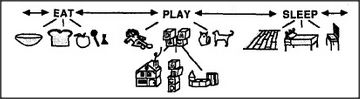 Suppose that our child is called away, no matter whether by someone else or by an internal urge like Sleep. What happens to the processes remaining active in the mind? One part of the child may still want to play, while another part wants to sleep. Perhaps the child will knock the tower down with a sudden, vengeful kick. What does it mean when children make such scenes? Is it that inner discipline breaks down to cause those savage acts? Not necessarily. Those childish acts might still make sense in other ways.